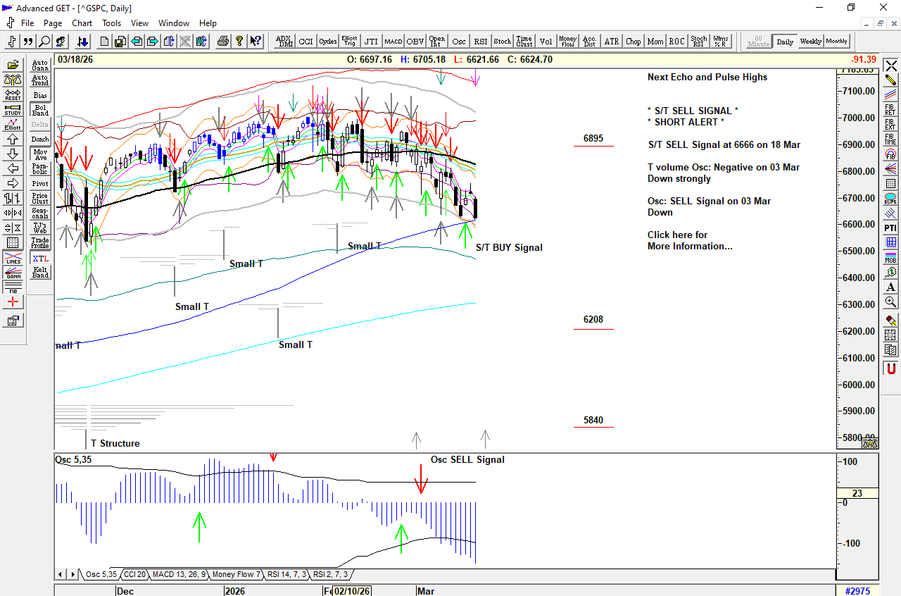 A gap lower into a Cover Signal below 6693 is met with strong selling triggering an S/T Sell Signal at 6666.