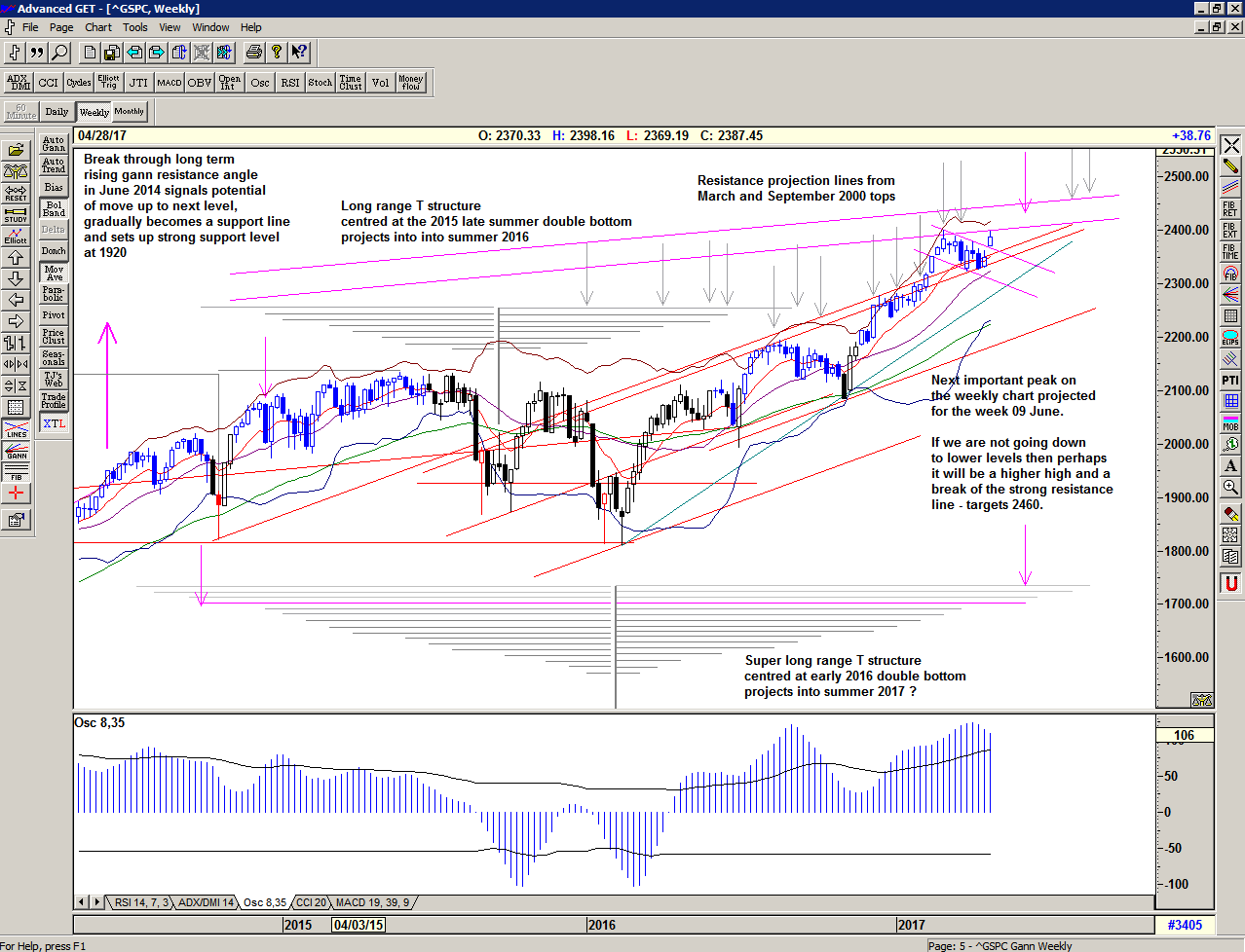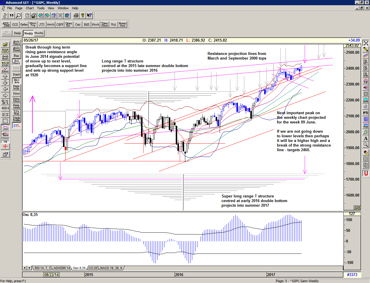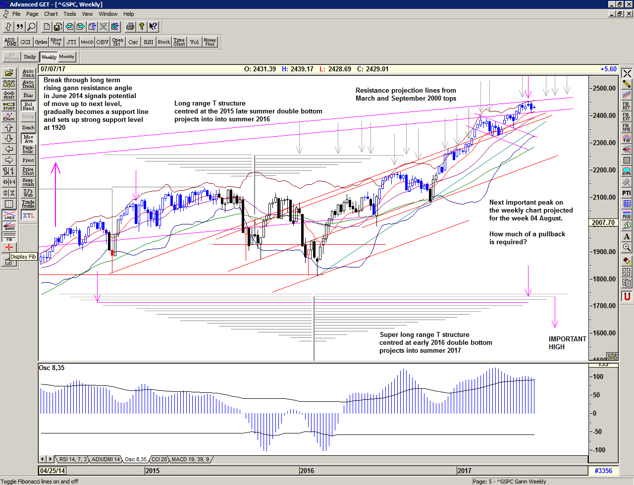 And so it appears that the market is exactly where it should be, and it has synchronised in time and price, establishing important new highs, close to projected peaks and close to an important trend line.