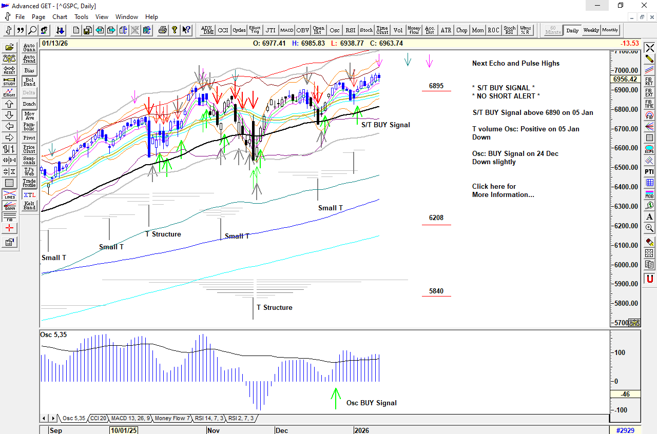 Strong selling in early action triggering a Cover Signal at 6934 and then an S/T Sell Signal at 6907 before a strong recovery cancelling the Sell Signal and re-activating the Buy Signal.