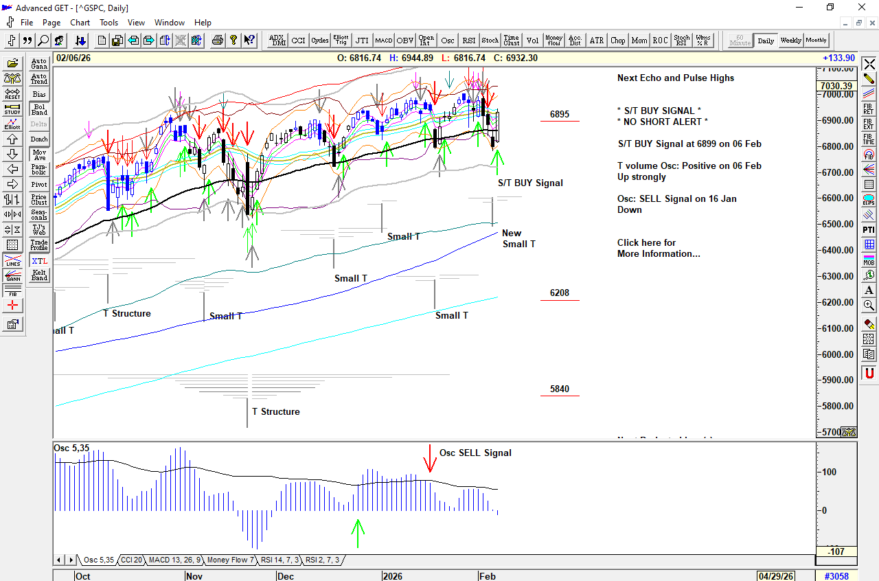 Strong buying from the open, triggering an S/T BUY Signal above 6883, dropping back sharply from 6910 but re-activating the Buy Signal into the close.