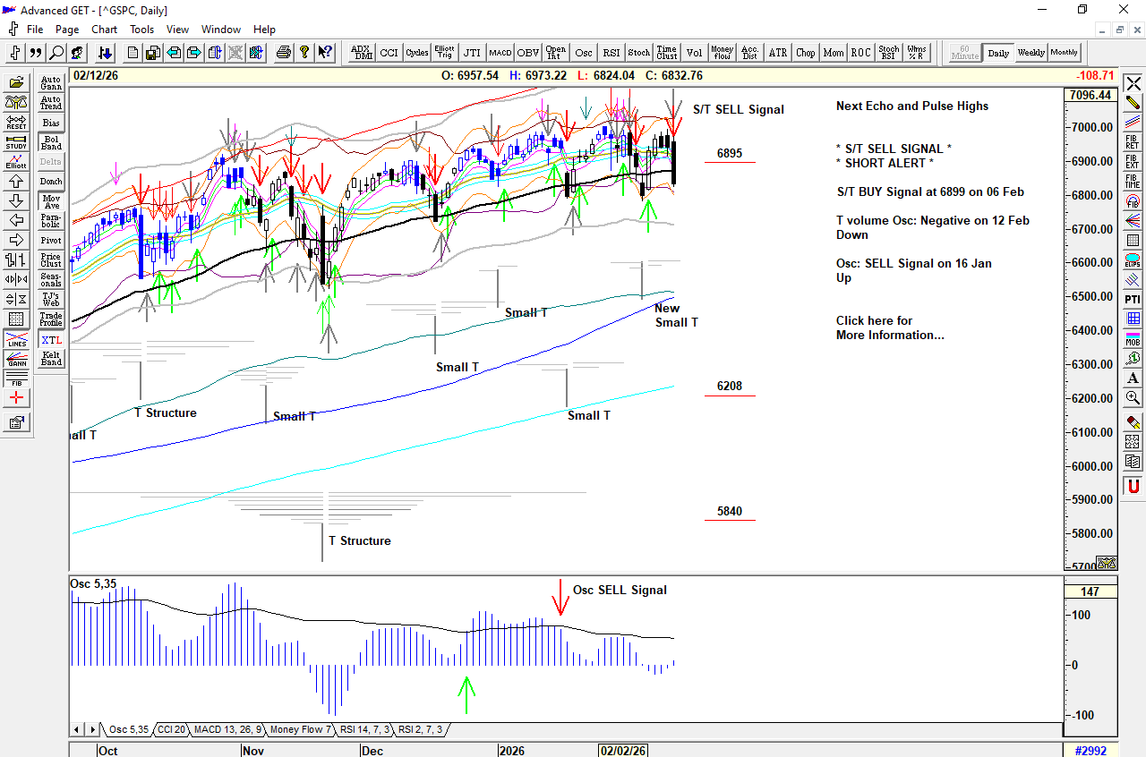 A quick look higher is met with strong selling triggering a Cover Signal at 6915 and an S/T Sell Signal at 6888