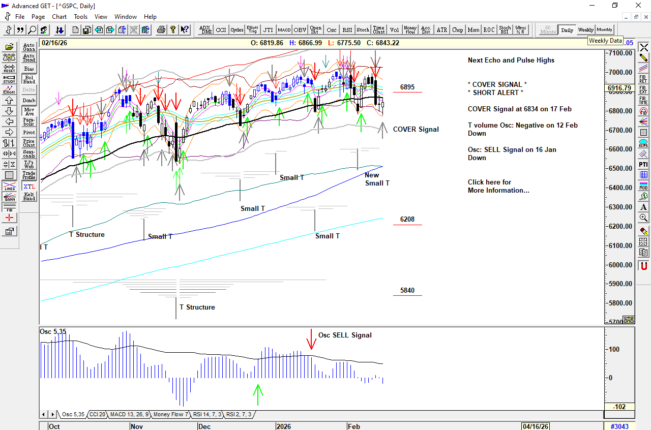 Strong selling triggering a Cover Signal at 6864 and an S/T Sell Signal at 6837