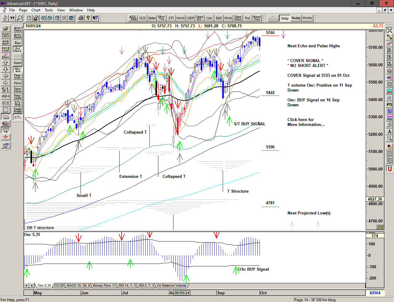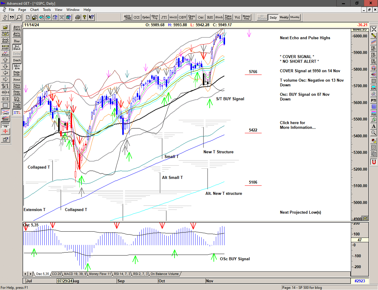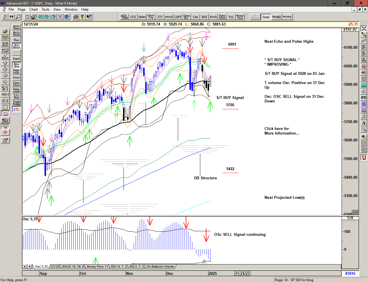 A strong push higher, triggering a Cover Short Signal above 5877 and an S/T BUY Signal at 5928.