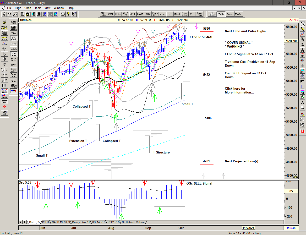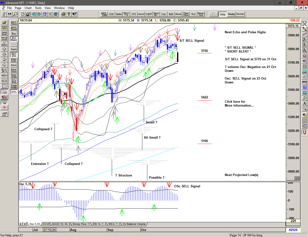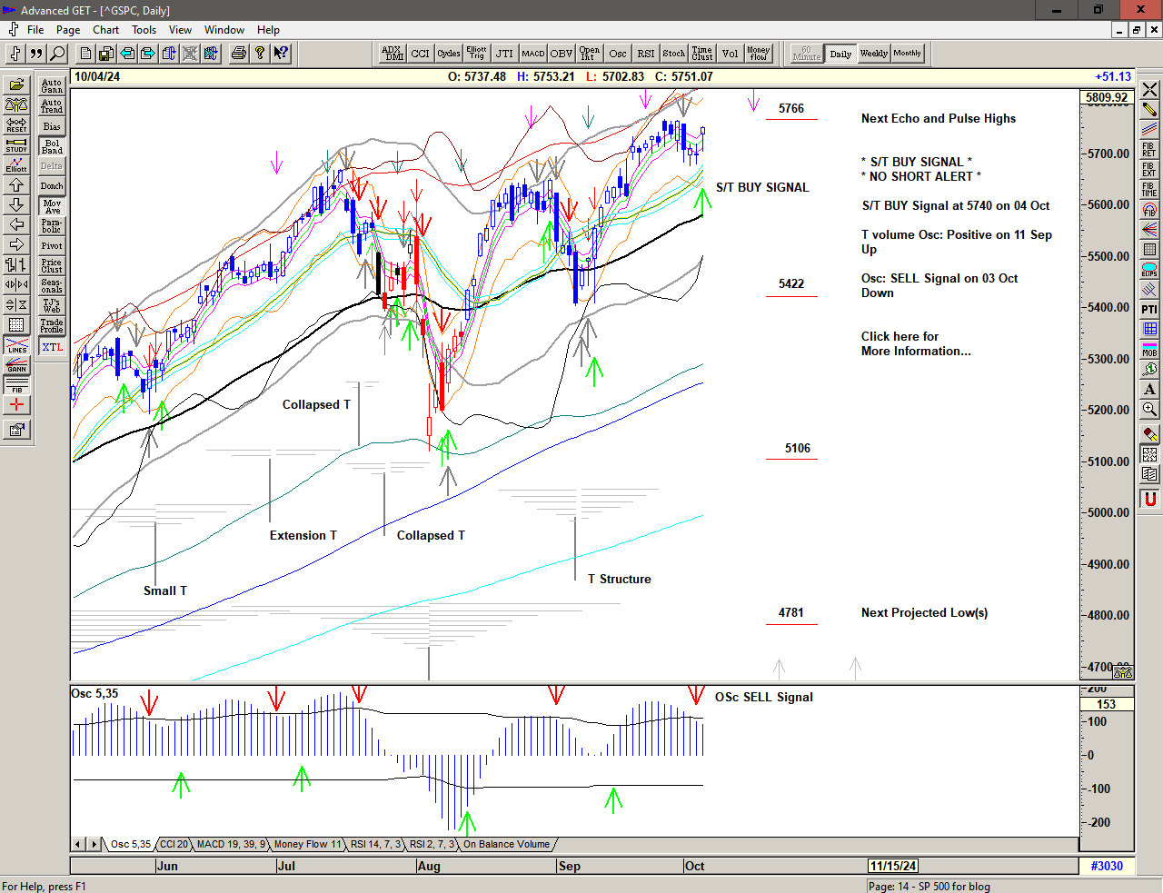 A strong push higher, triggering a Cover Short Signal above 5877 and an S/T BUY Signal at 5928.