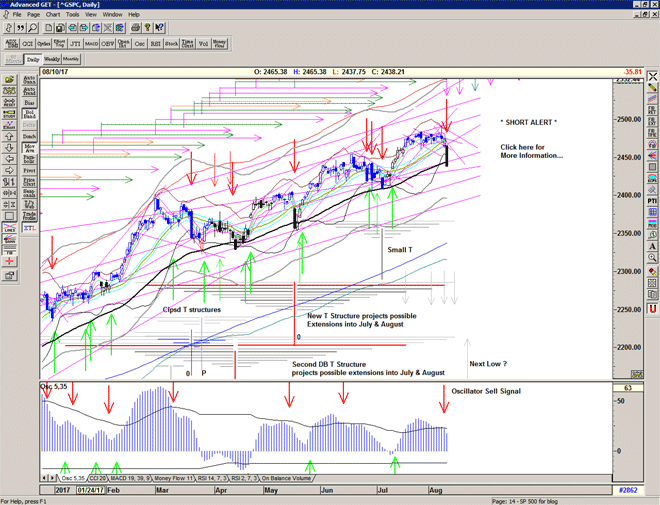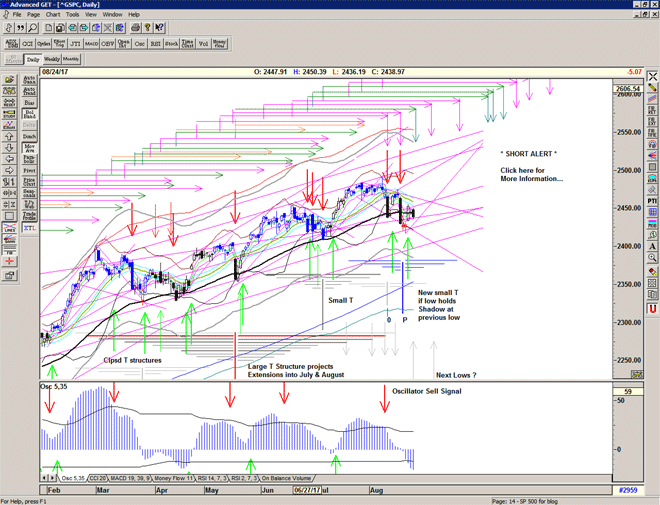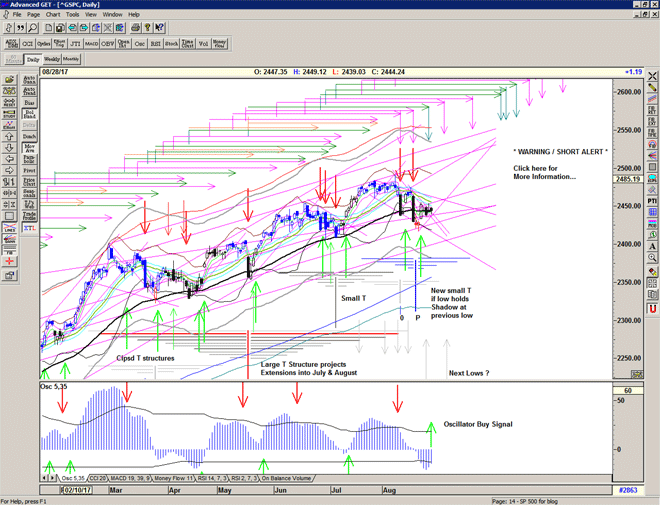 A decisive breakdown at the echo high and penultimate arm of the most recent Large T structures suggests that these structures are now complete and we should look for a new low to form a new T structure, as the market retreats from the recent all time high.
