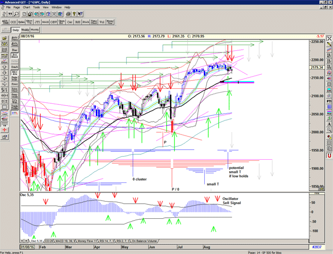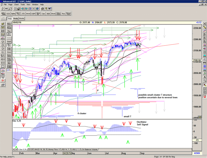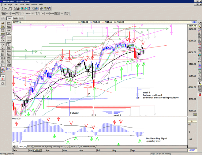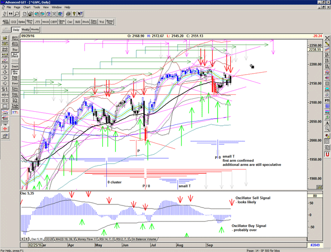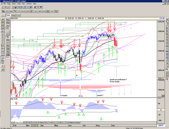 The erratic nature of the signalling is also 'telling' us something – and we should expect it to continue for the next few weeks. The market does not want to go down, there are significant forces at play keeping it up, but when the buying power dries up – albeit temporarily – as to be expected at the end of a major T structure, then the market will drop hard until the buyers are found at lower prices.