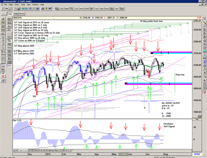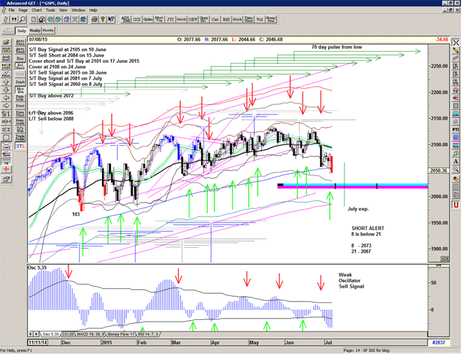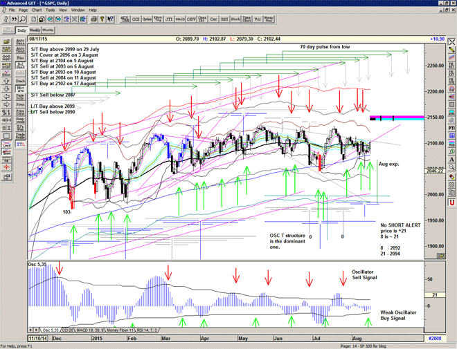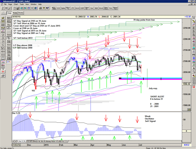 Penetration of the Mid-channel and at 2087 indicates a Sell Signal.