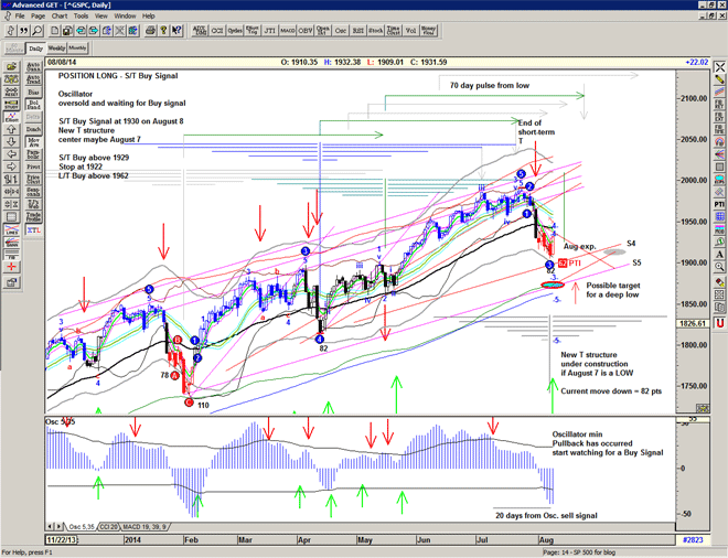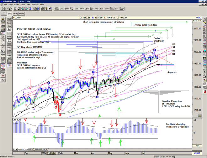 Yesterday's non response to the Fed + the overnight selloff (Argentina probable default) indicate that a Sell Signal should occur today at the open. It is clear that we need a pullback – but how far down?