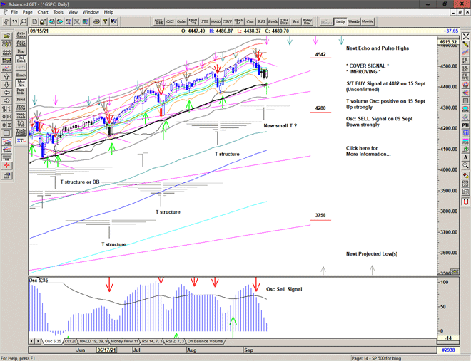Continued strength and a brief move above 4482 triggers an S/T Buy Signal in late afternoon action but this is unsustained and unconfirmed with a drop back just below into the close.