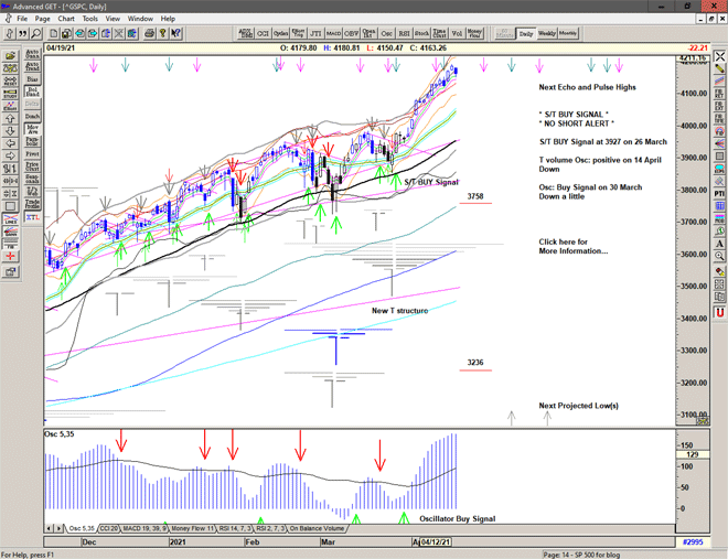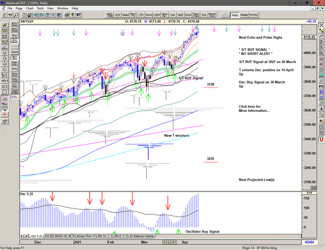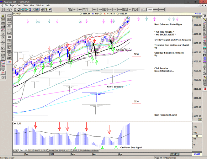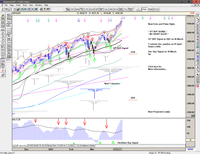 Regardless of whether the market can continue higher or whether significant lows are ahead of us, the simplicity of the proprietary price based S/T Signalling System will continue to keep us on the correct side of the market, with price currently on a Buy Signal since moving above 3927 on 26 March 2021.