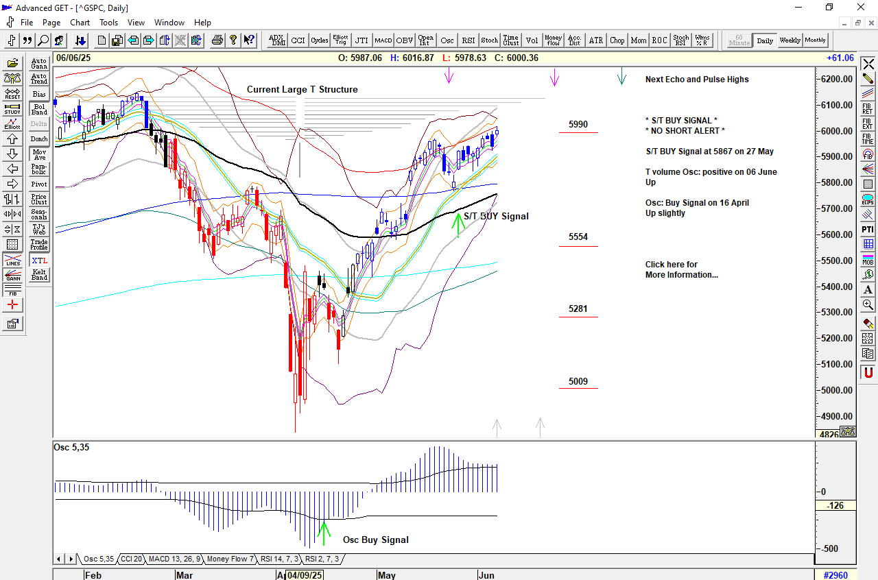 A gap up into an S/T Buy Signal at 6011 is quickly sold into, cancelling the Buy Signal below 5981.
