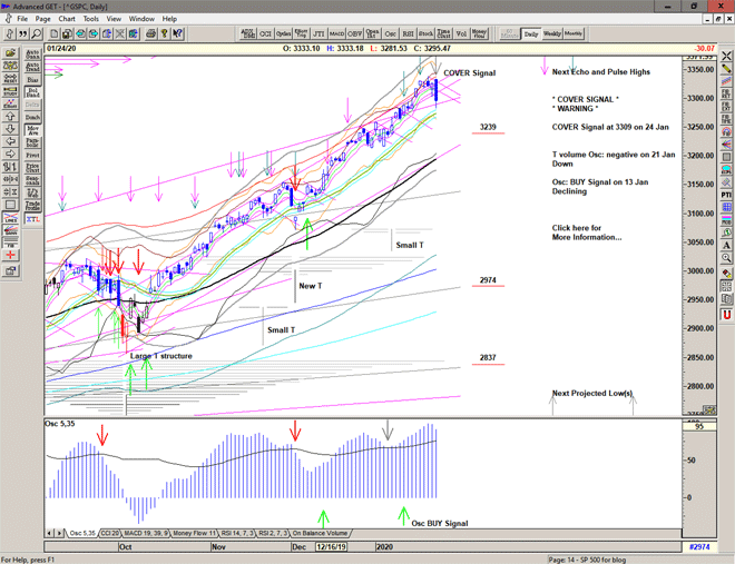 The market drops below the S/T Sell Signal level 3267 in overnight action.