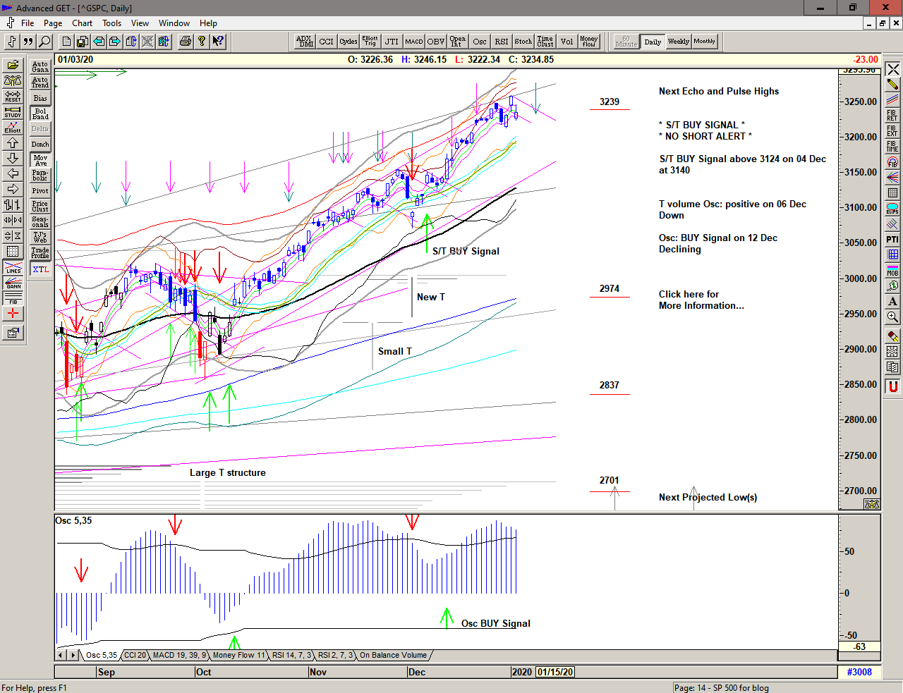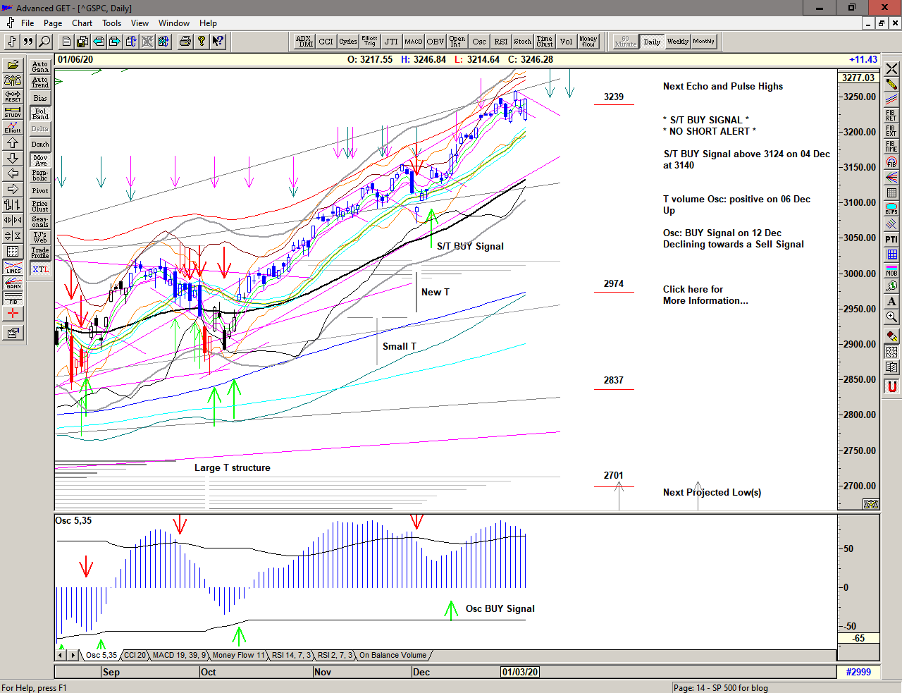 Regardless of whether the market can continue higher or whether significant lows are ahead of us, the simplicity of the proprietary price based S/T Signalling System will continue to keep us on the correct side of the market, with price currently on a Buy Signal since 3140 on 06 December 2019.