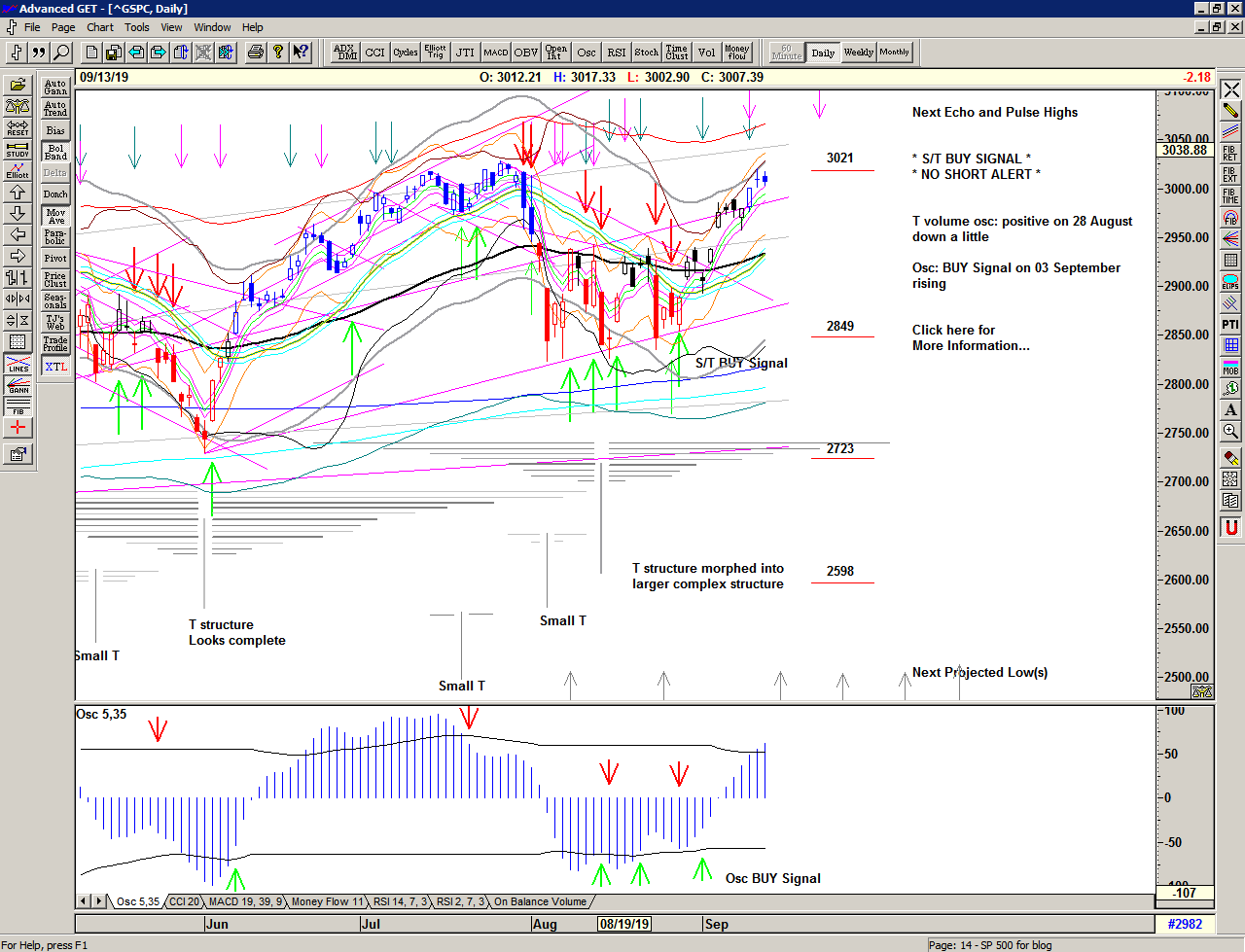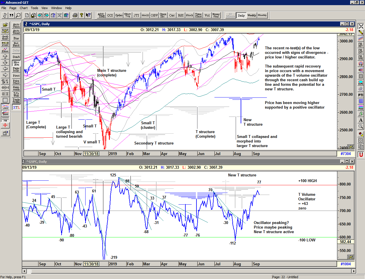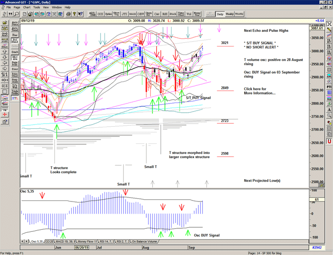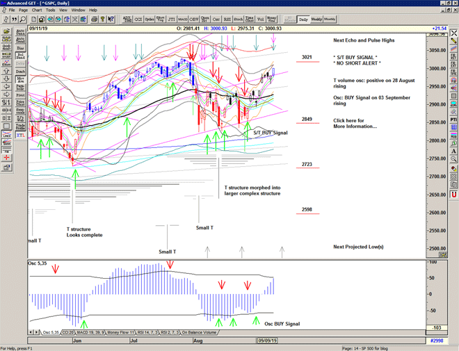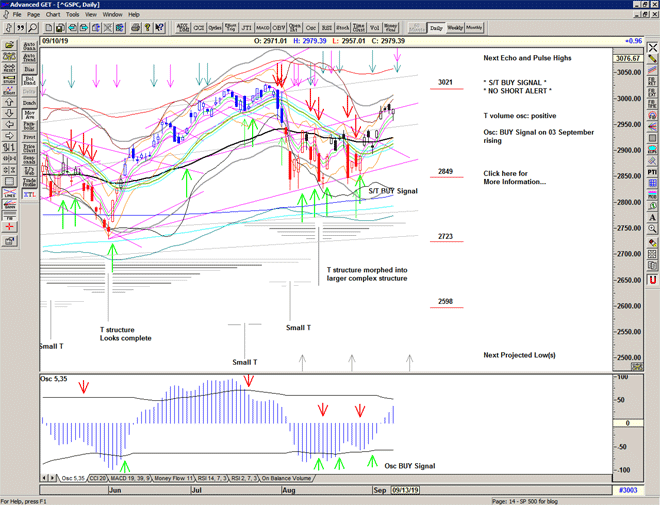 Regardless of whether the market can continue higher or whether significant lows are ahead of us, the simplicity of the proprietary price based S/T Signalling System continues to keep us on the correct side of the market, with price currently on a Buy Signal since 2887 on 28 August 2019