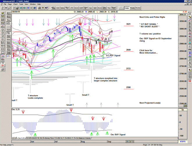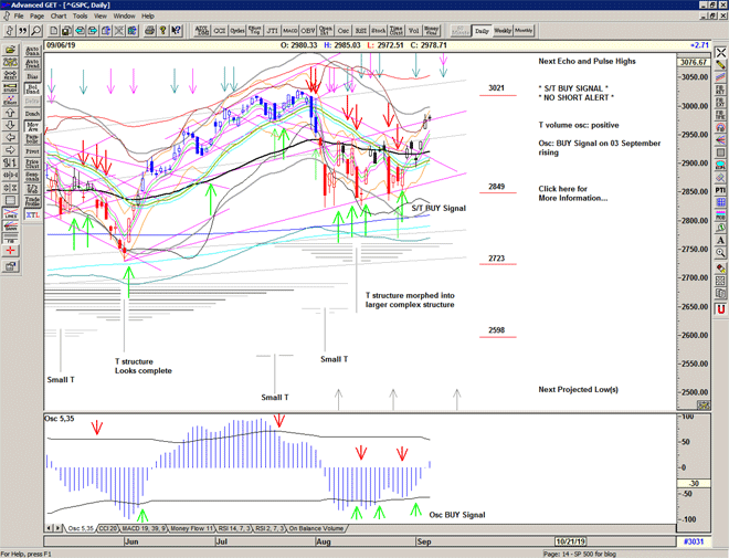 The current Buy Signal continues higher with a straight up day reaching 3000 on the echo and pulse high.