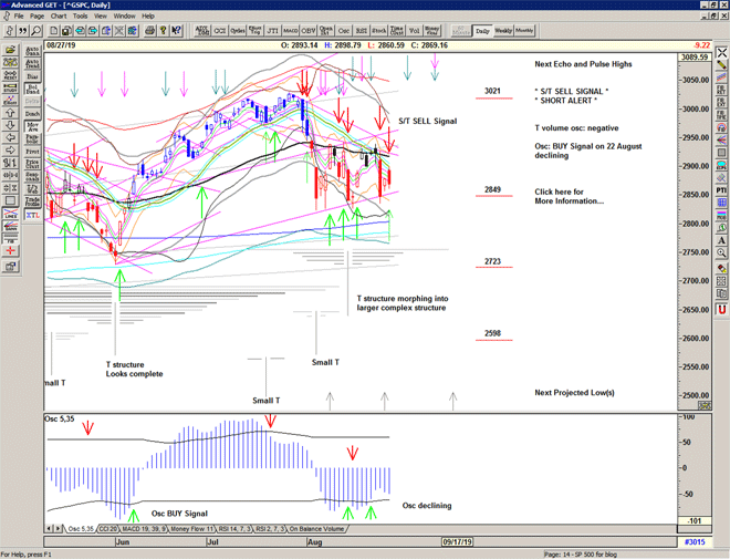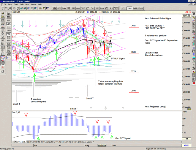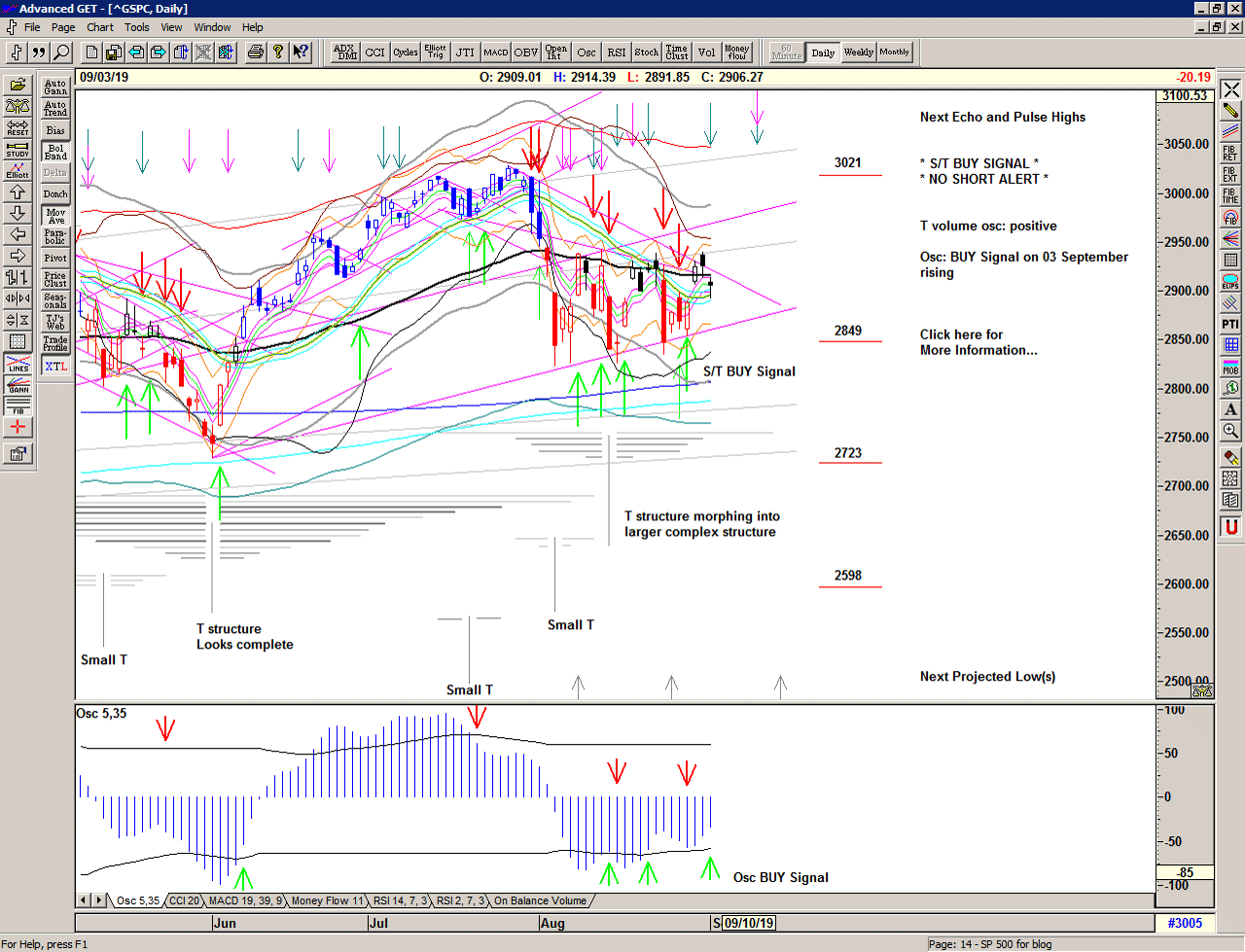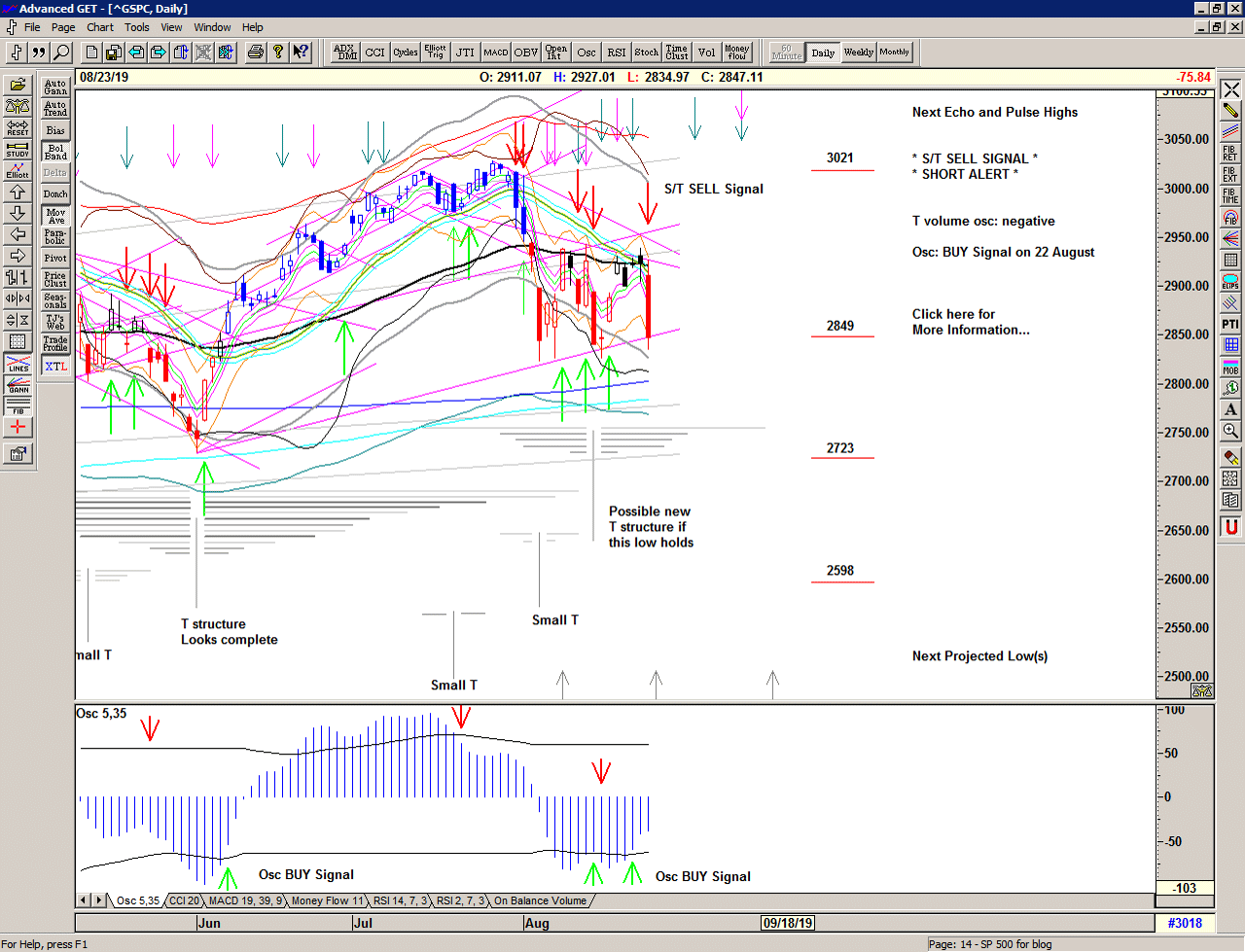 The market recovers the gap down and then the selling starts, triggering a Cover Signal at 2905 and an S/T Sell Signal at 2889.