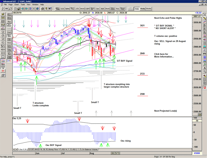 Three thousand in July and a rough August with some chaotic selling action and 3 recent important looking lows as the market pumps and dumps in the box from 2820 to 2940.