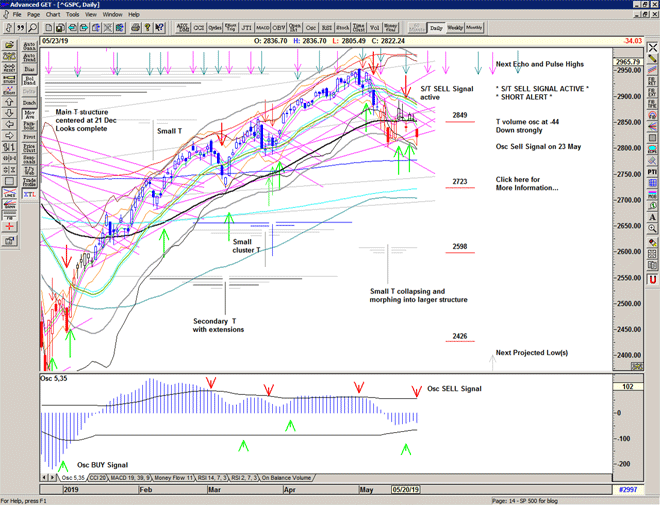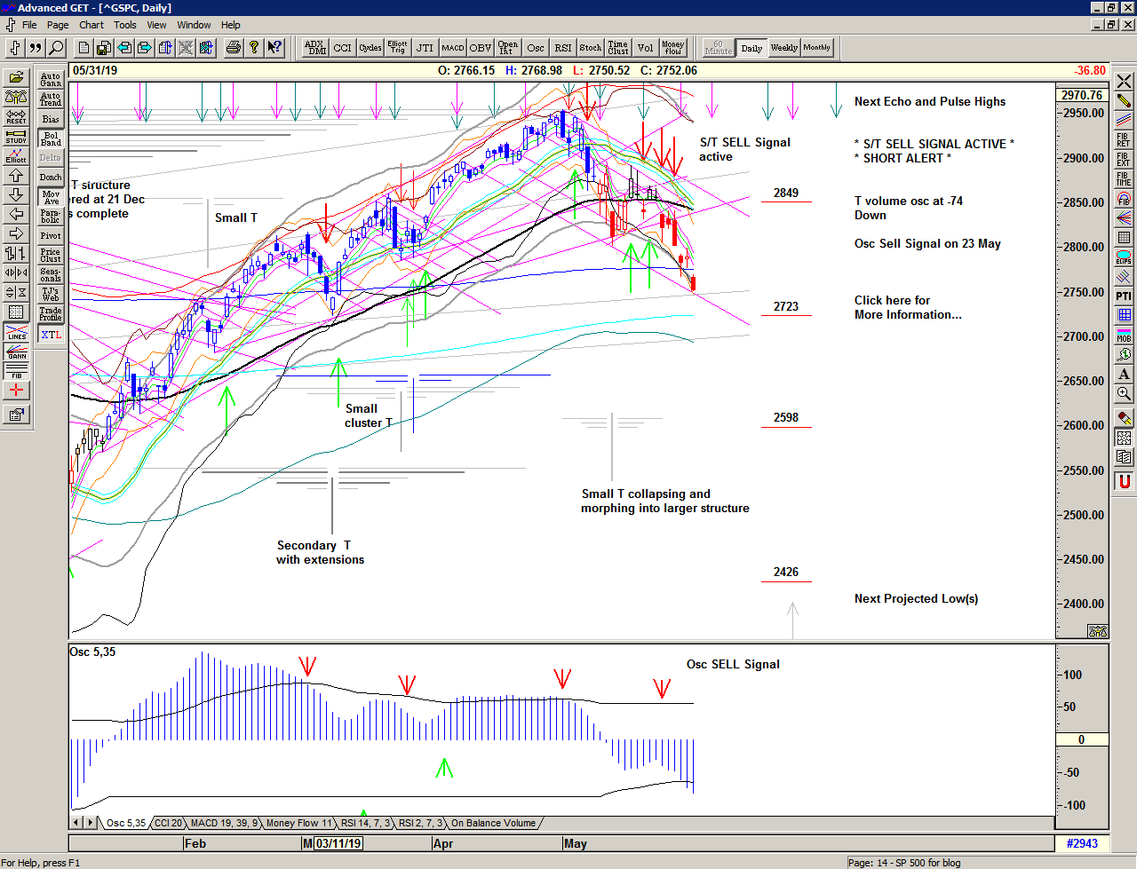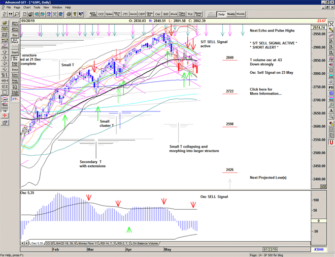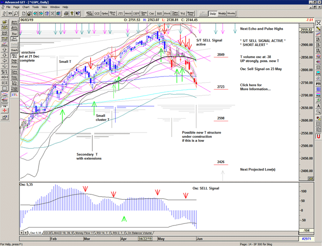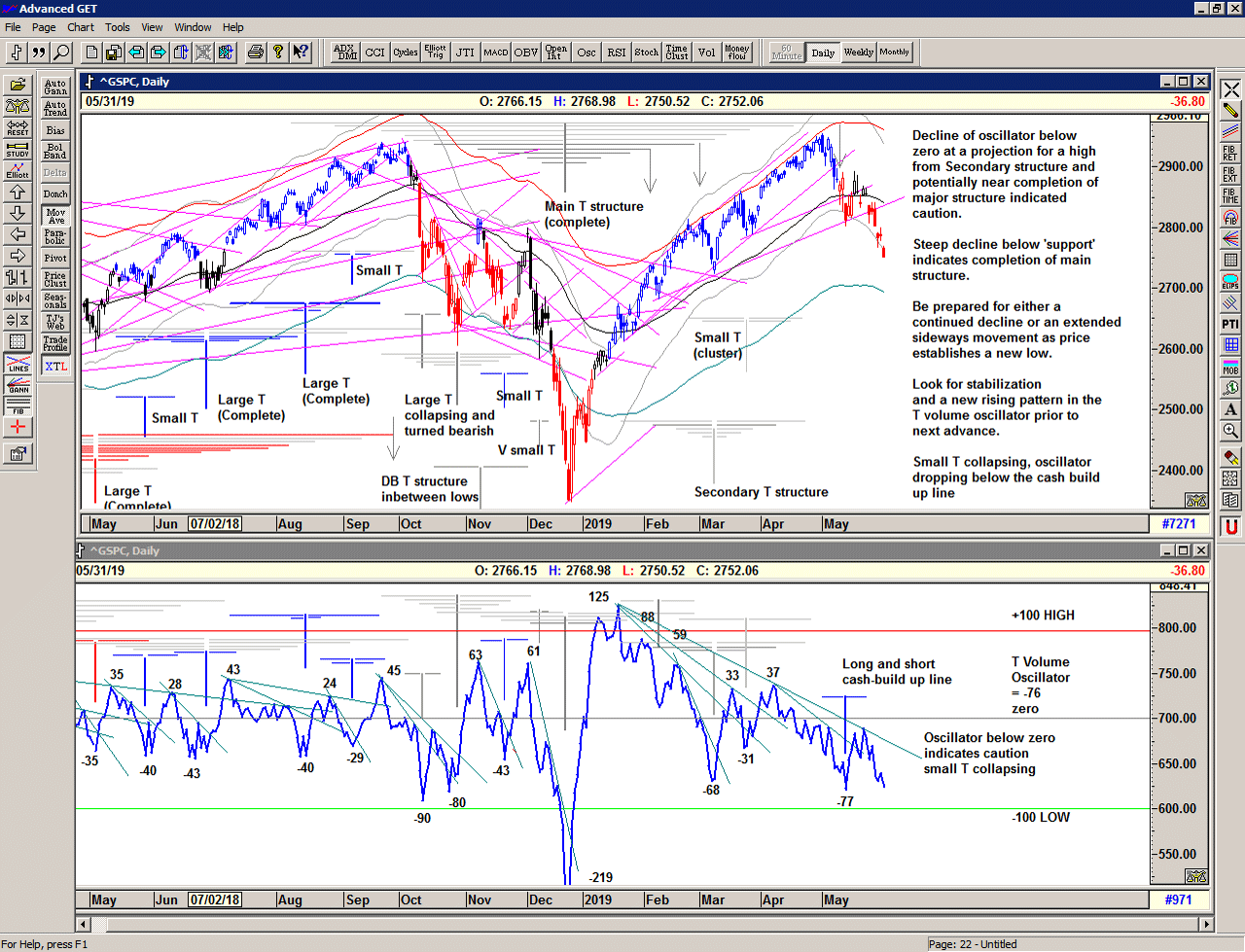 The large T structure projected a high on about 16 April with a possible subsequent high on about 09-10 May but the 01 May engulfing down day was enough to signal the end of the spring advance as each subsequent attempt to move back up has been rapidly sold into.