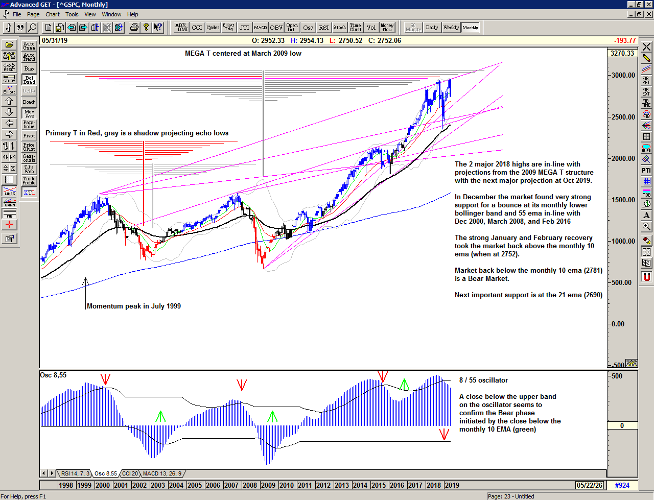 The next very long range projection for a high is in the September – October time frame. If the market is to recover and proceed back to new all time highs or perhaps an important lower high, we need to see some kind of recovery back above the 10 ema.