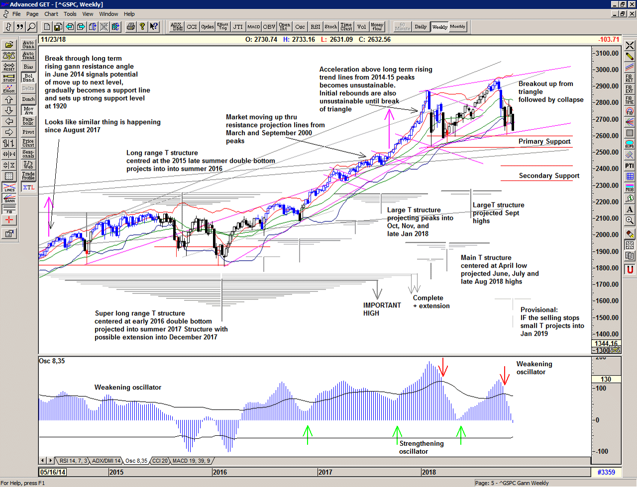 When a T structure collapses it will morph into a larger and more complex structure, and we must revise our expectations as the market looks for a secondary or another primary low.