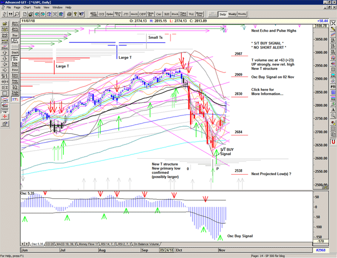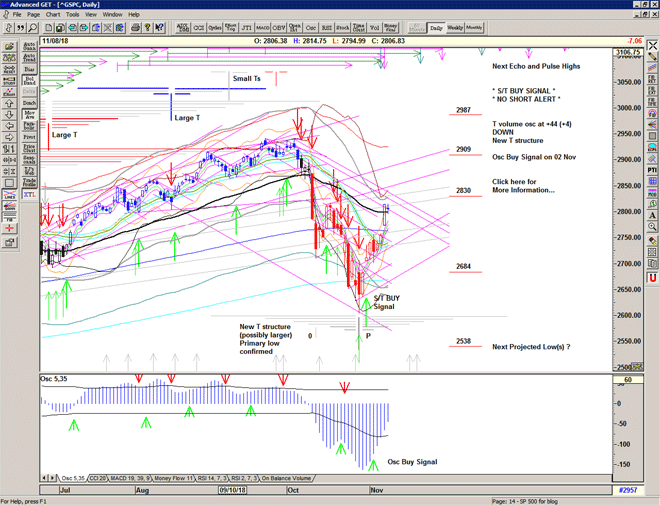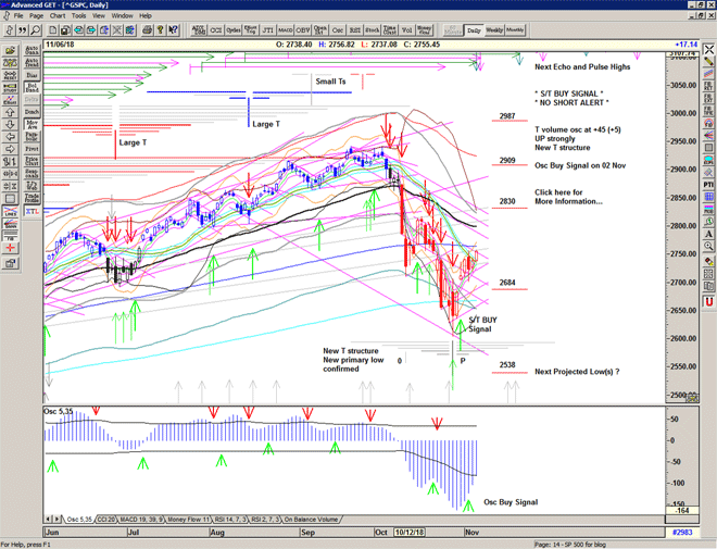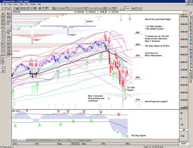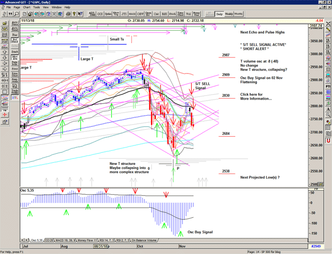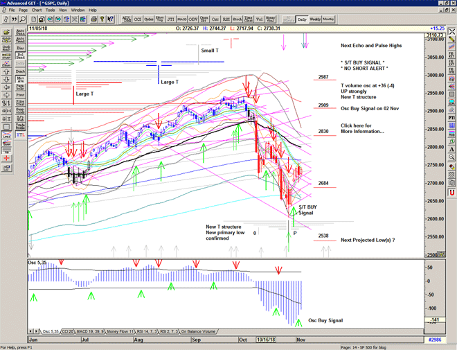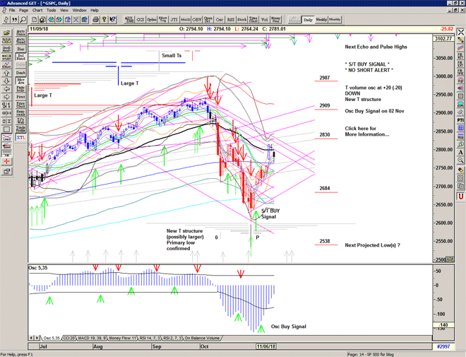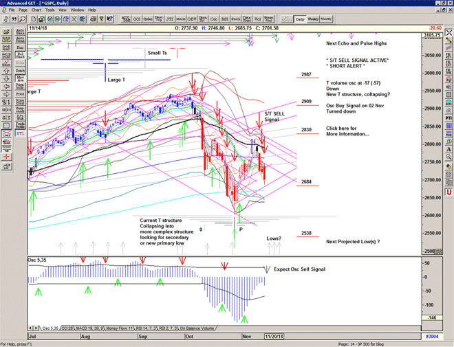 The market re-runs the script with a move higher sold heavily through the S/T Sell Signal line at 2729 into another deep low at 2685.