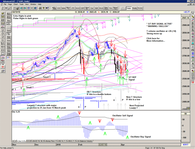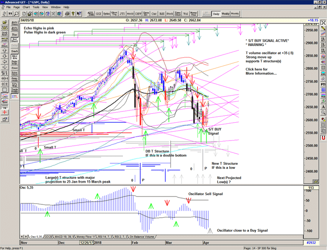 The T volume oscillator rises again and now looks to be supporting the new T structure at the 02 April low.