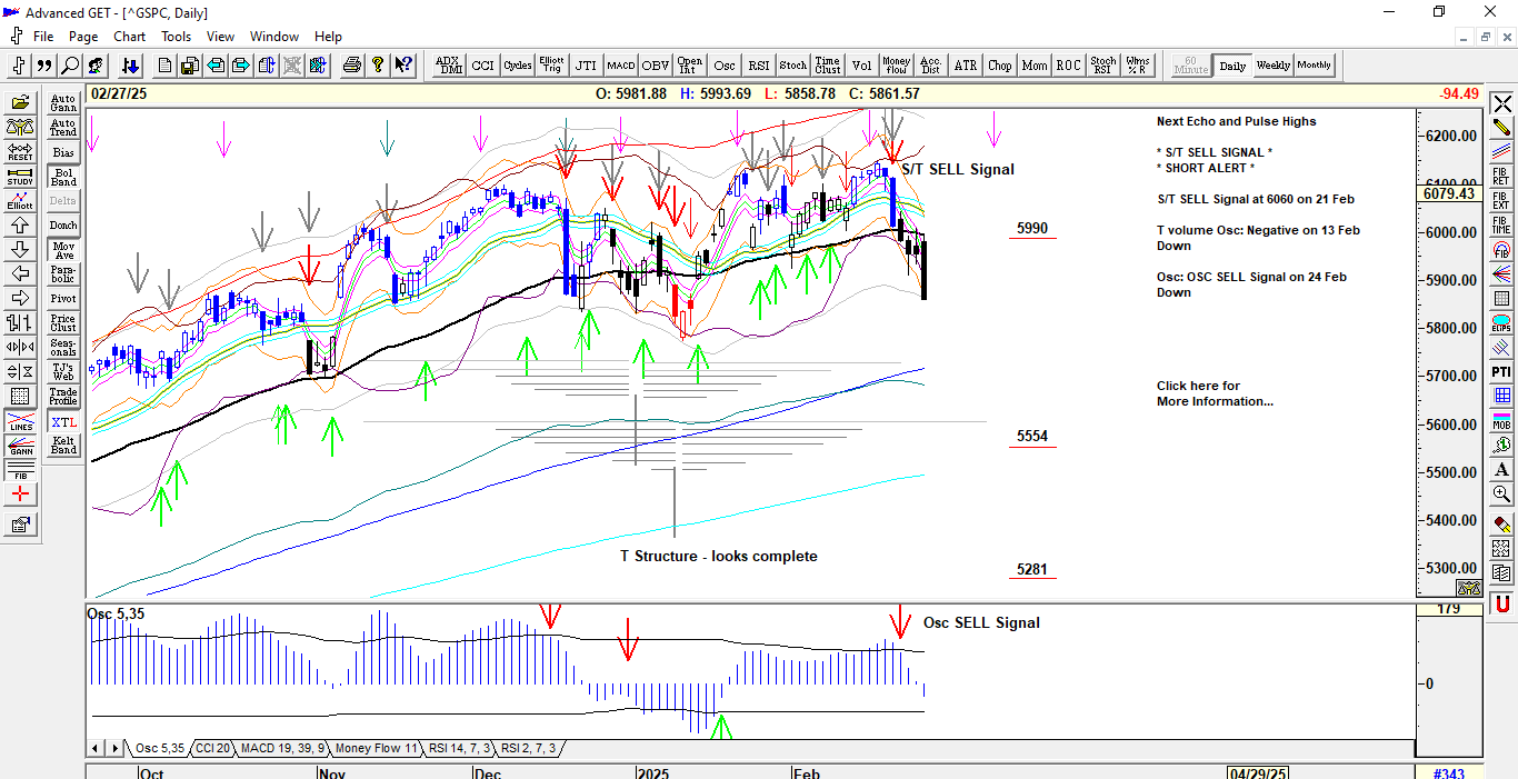 A quick look higher, briefly triggering an S/T Buy Signal above 5967 is met with strong selling, triggering an S/T Sell Signal at 5914 and dropping rapidly lower.