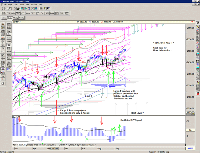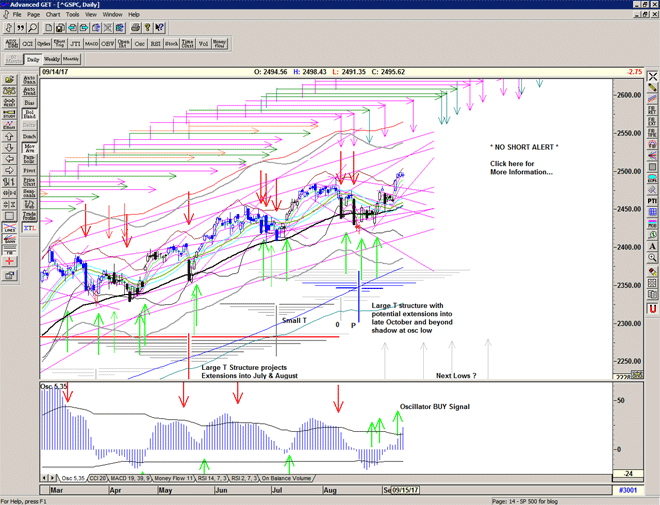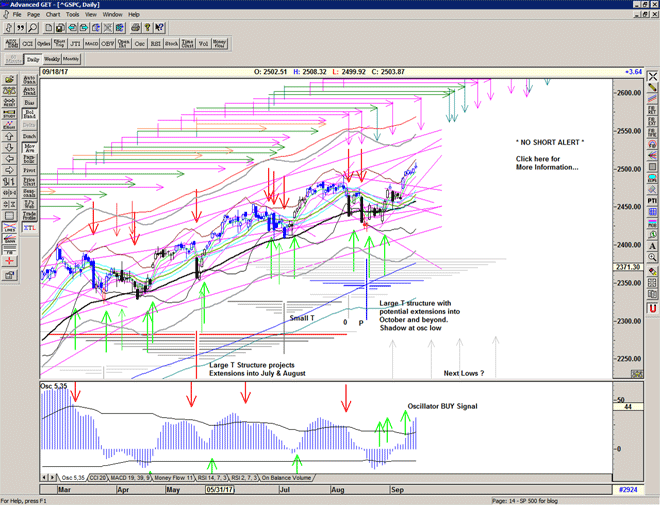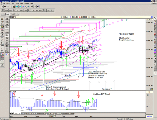 Initial projections for the current T structure are for later this week, and we may experience some strong selling because the super large double bottom structure of 2016 also projects another high – perhaps short term – for later this week.
