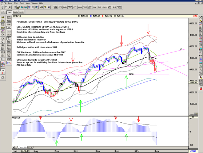We are back at the 55 line so above here we have a Buy signal (1804) and if rejected then we could see lower prices – a re-test of 1740 or even 1720.