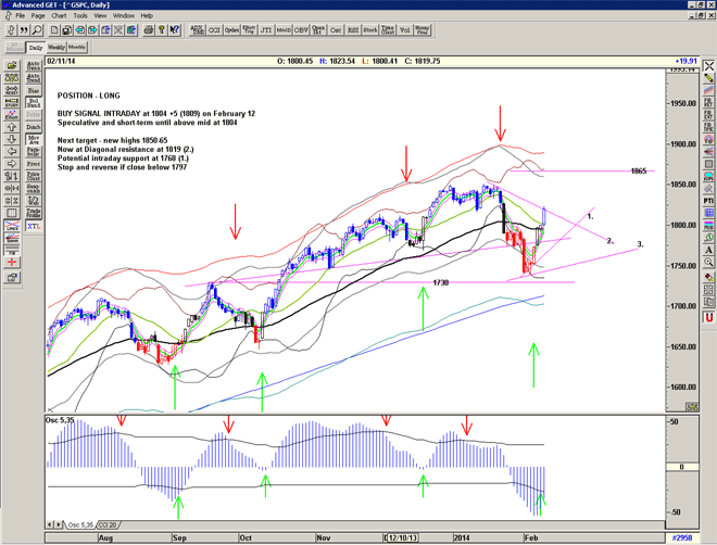 Yesterdays strong buy signal was bought with avengeance, again surpassing my expectations and proving the perma-bears to be very wrong yet again. We are now at a diagonal resistance 1819 so we should expect a bit of flagging perhaps down to 1800, maybe for a confirmation of the Buy signal or perhaps….